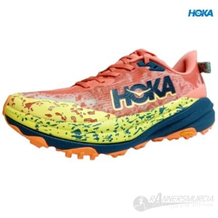 Zapatillas Hoka de trail running para corredores de peso ligero o medio. Esta cuarta versión viene más amortiguada  que sus versiones anteriores, ya que le han mejorado su compuesto para hacerlo más ligero y cómodo, además de aumentarle el perfil pero manteniendo el pie seguro con Active Foot Frame™. Empeine de malla de capa única transpirable con un 35 % de poliéster reciclado muy resistente. Su taqueado de la suela es de 5 mm de altura para un agarre potente y que cubre gran superficie de la suela para una mayor durabilidad. Meta-Rocker™ en posición de fase inicial. Drop  5 mm.