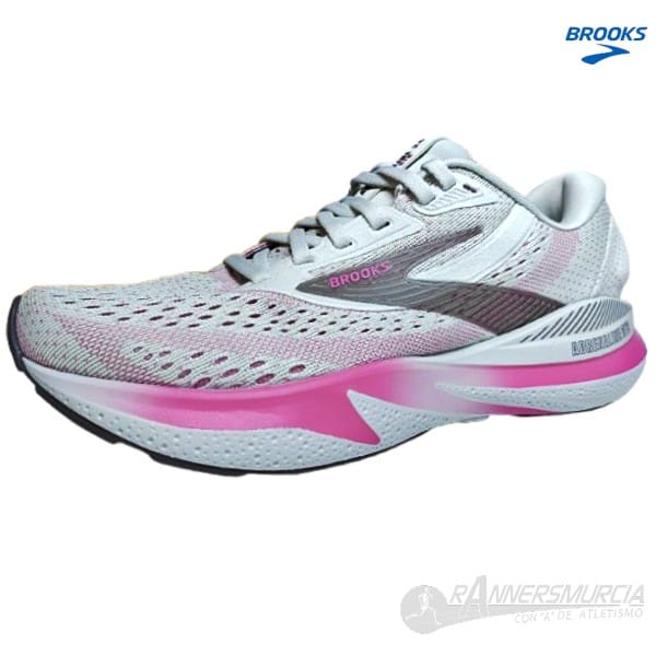 Zapatillas de running para corredoras de peso medio y pisada pronadora. Su media suela está formada por la tecnología DNA LOFT V3, con nitrógeno infusionado, una amortiguación suave, duradera y adaptable a cualquier ritmo de carrera (como todas las tecnologías DNA de Brooks). La tecnología GuideRails, que incorpora en su media suela para guiar la pisada y el exceso de movimiento, aporta estabilidad en la zancada. Su upper es de una malla elástica y transpirable que da un buen ajuste y confort durante la carrera. Drop 12 mm.