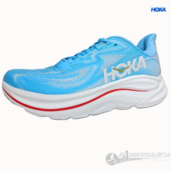 Zapatillas Hoka para corredoras de pisada neutra hasta los 70-75 kg que buscan una excelente amortiguación bajo sus pies con un peso muy reducido, lo que la hacen unas zapatillas muy polivalentes, tanto para acumular kilómetros en los entrenamientos, como para las competiciones. Esta nueva versión, las Clifton 10 vienen con una espuma renovada, su CMEVA,  y con la gran novedad de aumentar en 3 mm su perfil de mediasuela en la zona del talón, para aportar más amortiguación y confort en las largas tiradas de kilómetros, lo cual hace que su drop pase de 5 a 8 mm. La tecnología MetaRocker™ sigue presente en la mediasuela para una transición de la pisada muy fluída. Su upper es de un tejido de punto Jacquard, muy ligero y transpirable, con una lengüeta aerodinámica.