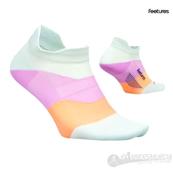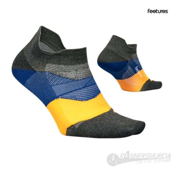 Calcetín Feetures con diseño anatómico y compresión dirigida, que proporciona un gran ajuste y reduce en gran medida el riesgo de ampollas. Las zonas del pie de mayor contacto presentan un acolchado de alta densidad, sin abultamiento para mayor comodidad. Sin costuras. Se aconseja lavar los calcetines del revés.