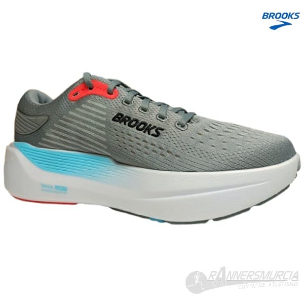 La nueva GHOST MAX 3 de Brooks, es una versión maximalista de su tradicional Ghost, es decir, un perfil totalmente maximalista con un drop de 6 mm, y está pensada para corredores de pisada neutra y peso medio o elevado, no más de 85 – 90 kg, que buscan una zapatilla segura para sus entrenamientos y carreras. Su media suela está compuesta por el último compuesto de Brooks, su DNA Loft v3, el cual incorpora nitrógeno infusionado para ofrecer una densidad un poco más baja pero con un mayor retorno de energía. La estructura de su DNA Loft V3 consigue que la zapatilla sea muy estable y su sistema GlideRoll Rocker, que en esta nueva versión se extiende hacia la puntera, facilita la transición de la pisada,  ayudando además a recuperar fascitis plantar, metatarsalgias y neuromas de Morton. Su upper es de un engineered mesh de doble capa que se combinan para dar la sensación de llevar una sola capa y así ofrecer un buen ajuste y confort. Su lengüeta presenta un buen acolchado, para un ajuste perfecto y no va unida a los laterales, por lo que las hace idóneas para las que usáis plantillas o necesitáis más espacio en esa zona del pie.
