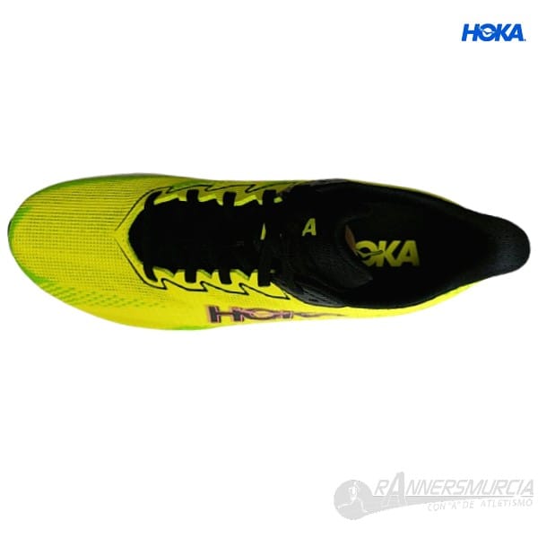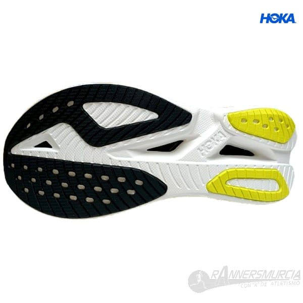 Zapatilla  Hoka de running con placa de Pebax, zapatillas muy dinámicas y ligeras para entrenamientos rápidos o competiciones de distancia, tanto corta como maratón, ideales para los corredores más exigentes. Su media suela está construida con dos espumas de densidades diferentes. Bajo la plantilla incorpora una espuma PEBA, muy ligera, muy reactiva y altamente resistente. La parte inferior de la media suela está formada por la famosa espuma de Hoka,su ProFlyX™, de mayor densidad que la anterior, para dar más soporte a la zapatilla. Entre ambas espumas Hoka introduce una placa de PEBAX, que en esta nueva versión, la extiende, en forma de ala, en la zona de los metatarsos para ayudar a sentar mejor el pie y aportar una estabilidad extra en la fase de despegue. Upper de nueva malla jacquard, que ofrece un buen ajuste, y un talón y una lengüeta más acorchada que su versión anterior. Drop 5 mm.
