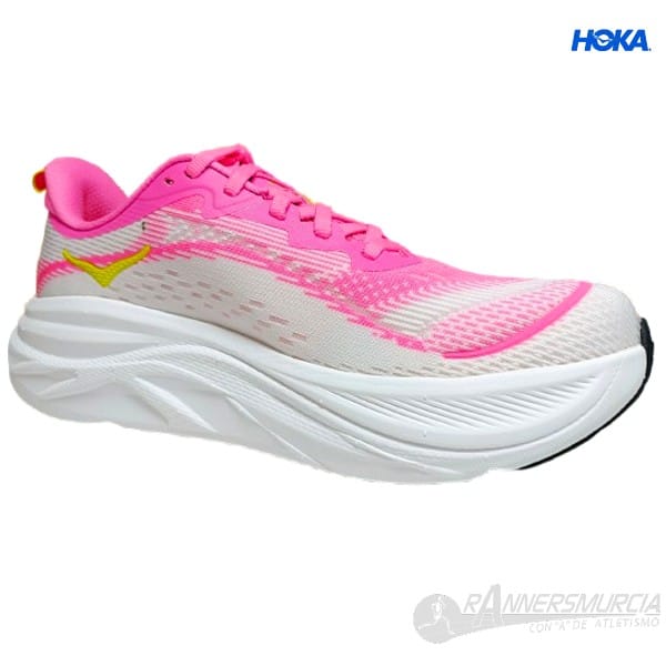 Las nuevas Skyflow de Hoka aportan una excelente combinación entre amortiguación y reactividad, ideal para las que buscáis una zapatilla dinámica, pero al mismo tiempo segura, estable y amortiguada. Pensada para corredoras de peso medio o elevado y pisada neutra. La espuma EVA supercrítica ofrece una pisada con una comodidad y rebote extraordinarios, mientras que la estructura Active Foot Frame™ centrada en el talón envuelve el pie; además, la suave geometría Meta-Rocker en el antepié resta esfuerzo a las zancadas.  El upper de la Skyflow está compuesto por el suave y resistente tejido Jacquard. Drop 5 mm.